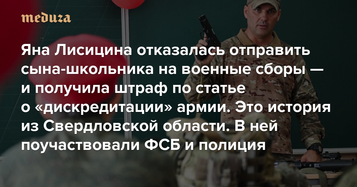 Яна Лисицина отказалась отправить сына-школьника на военные сборы — и получила штраф по статье о «дискредитации» армии Это история из Свердловской области. В ней поучаствовали ФСБ и полиция