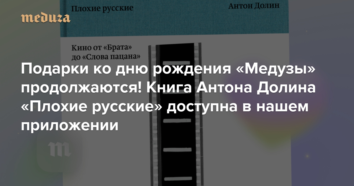 Без вашей поддержки нас бы не было. Поэтому по случаю дня рождения мы дарим вам один из главных наших хитов — книгу кинокритика «Медузы» Антона Долина «Плохие русские. Кино от „Брата“ до „Слова пацана“».
