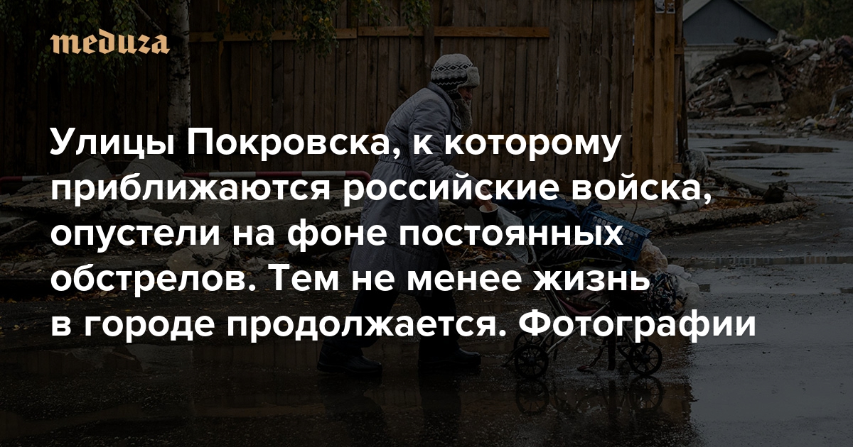Российское наступление на Покровск продолжается. 19 октября боевые действия велись в населенных пунктах менее чем в 10 километрах от города. А атаки на сам Покровск Вооруженные силы (ВС) РФ возобновили в начале месяца — на участке фронта севернее Селидово. И несмотря на то, что прямых указаний на готовность российской армии к штурму города пока нет, Покровск, где до начала полномасштабной войны жили более 60 тысяч человек, уже практически опустел, а по его улицам свободно летают беспилотники ВС РФ. Сегодня в городе, вероятно, остаются более 10 тысяч мирных граждан. Для них действует 20-часовой комендантский час. Местные власти также предупредили, что в город зимой не будет подаваться отопление, и констатировали, что Покровск с высокой вероятностью ждет судьба Бахмута и Авдеевки, разрушенных бомбардировками и артиллерийскими обстрелами. «Медуза» собрала кадры, которые фотокорреспонденты международных информационных агентств делали в Покровске и окрестностях в последние дни. Так выглядит Покровск накануне полномасштабных боев в городской застройке.