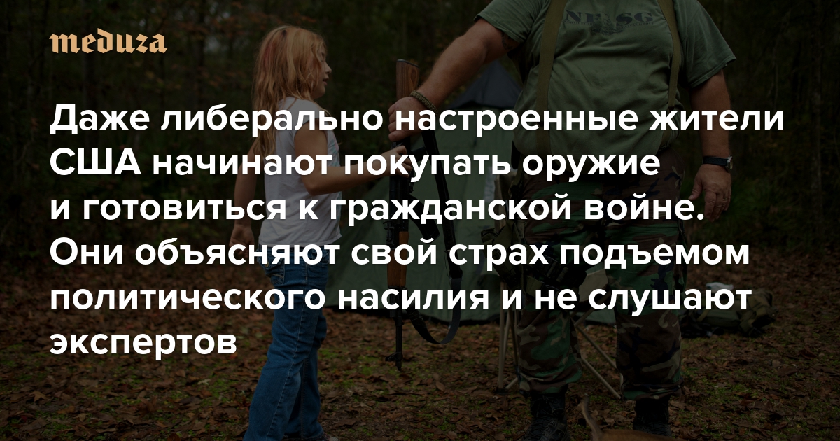 «Когда на горизонте возникают проблемы, мудрые люди к ним готовятся» Даже либерально настроенные жители США начинают покупать оружие и готовиться к гражданской войне. Они объясняют свой страх подъемом политического насилия и не слушают экспертов