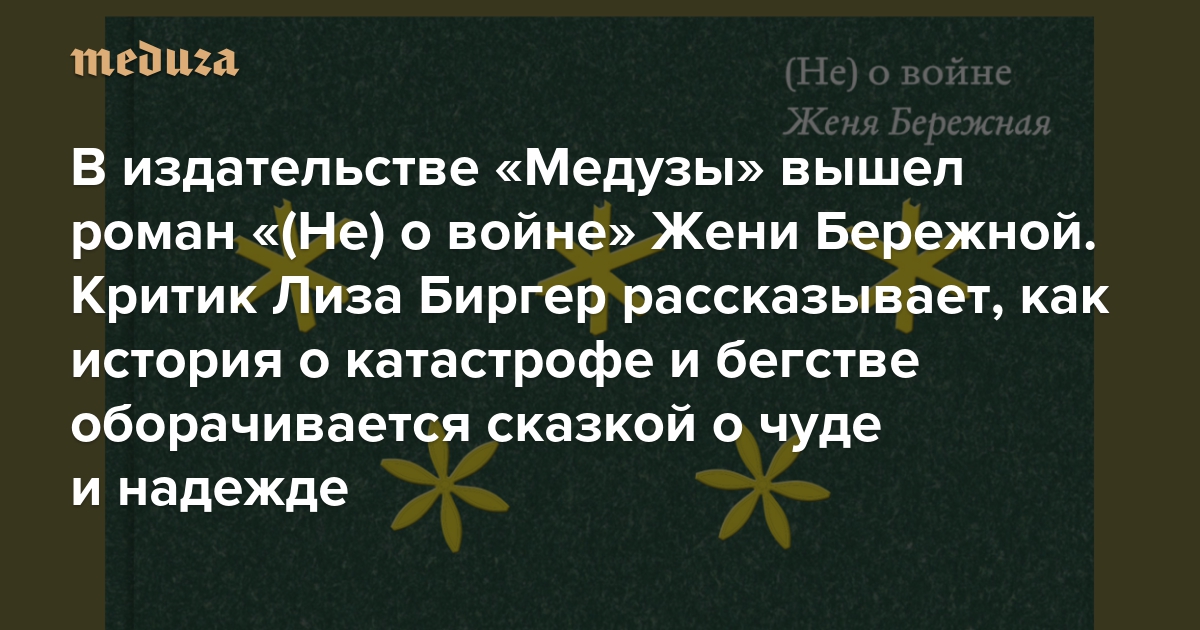 Лекарство от молчания В издательстве «Медузы» вышел роман «(Не) о войне» Жени Бережной. Критик Лиза Биргер рассказывает, как история о катастрофе и бегстве оборачивается сказкой о чуде и надежде