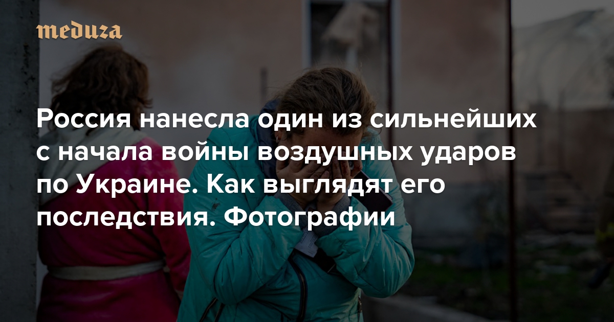 Российские войска в ночь на 17 ноября выпустили по территории Украины как минимум 120 ракет и 90 дронов. «Целью была энергетическая инфраструктура по всей Украине», — сообщил президент Украины Владимир Зеленский. Удары были нанесены, в числе прочего, по Киеву и Одессе, Кривому Рогу и Днепру, Ровно, Львовской и Николаевской областям. Из-за ударов, которые МИД Украины назвал «одной из крупнейших воздушных атак» с начала полномасштабного вторжения, было прервано электроснабжение, подача воды и тепла, нарушен график движения поездов. Вечером 17 ноября российские войска ударили ракетами по Сумам, был поврежден девятиэтажный жилой дом, погибли не меньше 11 человек. «Медуза» публикует фотографии последствий российских ударов по Украине.