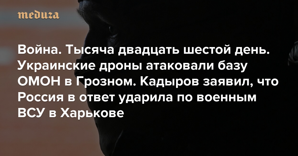 Война Тысяча двадцать шестой день. Украинские дроны атаковали базу ОМОН в Грозном. Кадыров заявил, что Россия в ответ ударила по военным ВСУ в Харькове