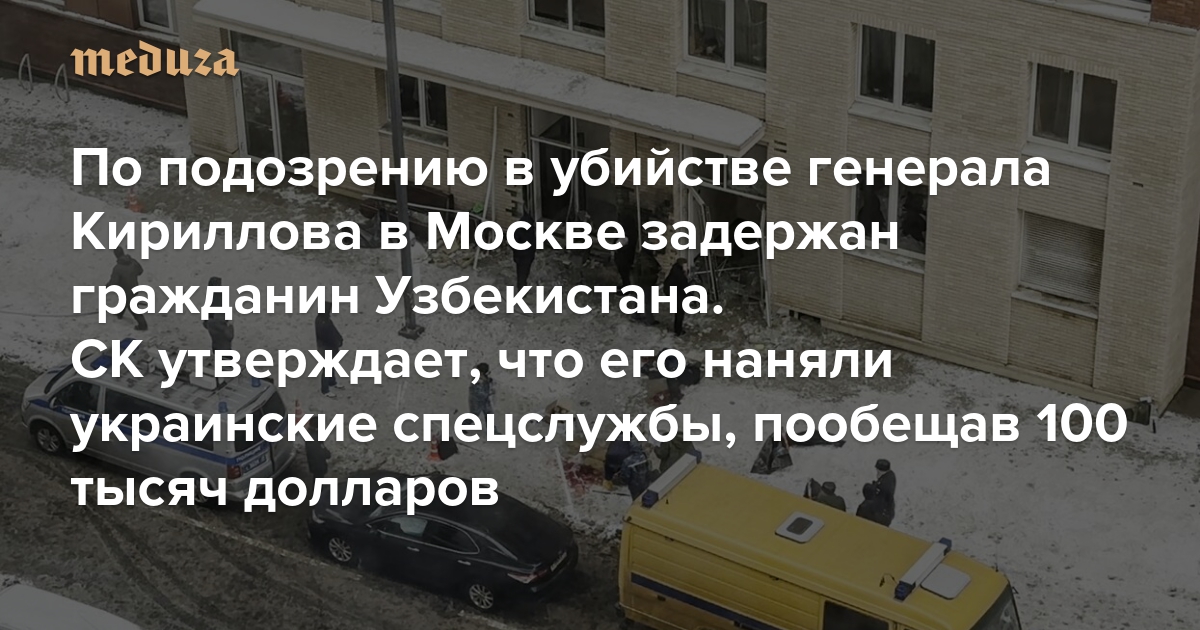 По подозрению в убийстве генерала Кириллова в Москве задержан гражданин Узбекистана. СК утверждает, что его наняли украинские спецслужбы, пообещав 100 тысяч долларов