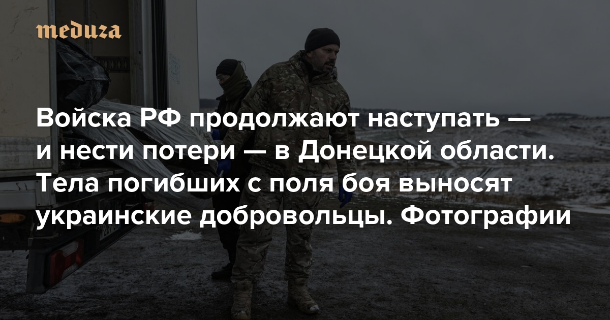 Войска РФ продолжают наступать — и нести потери — в Донецкой области. Тела погибших с поля боя выносят украинские добровольцы. Фотографии