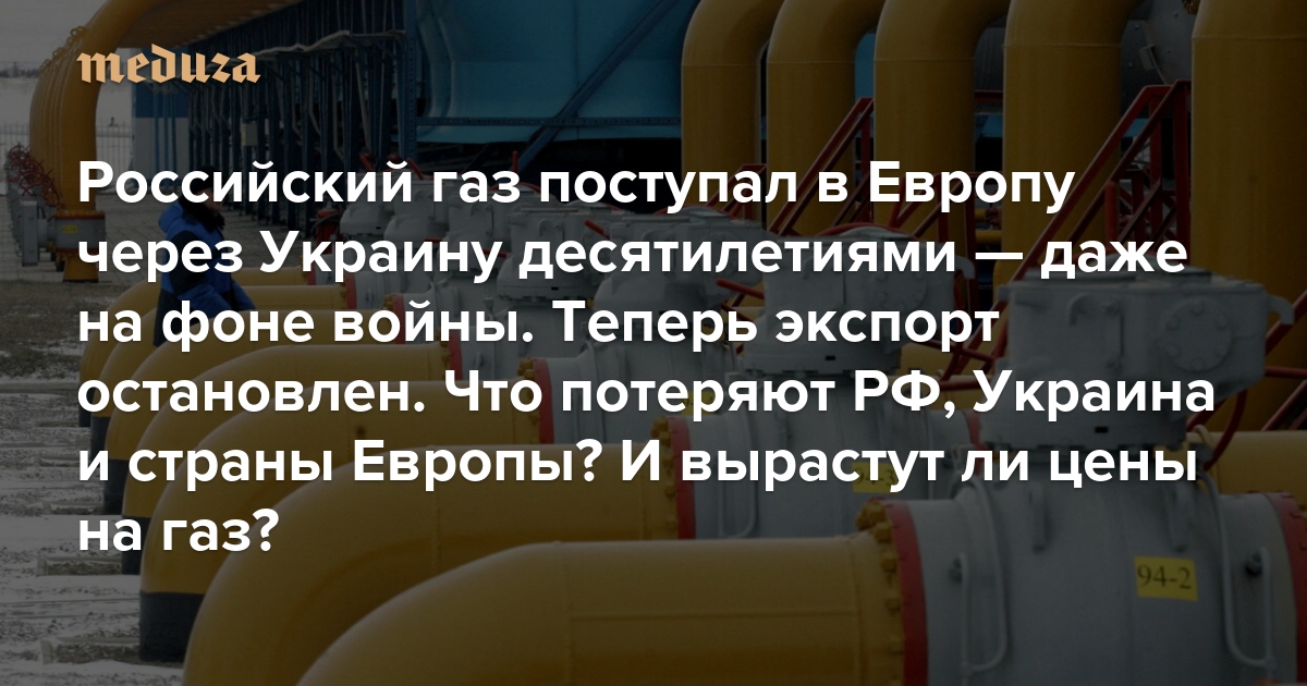 Российский газ поступал в Европу через Украину десятилетиями — даже на фоне войны. Теперь экспорт остановлен Что потеряют РФ, Украина и страны Европы? И вырастут ли цены на газ?