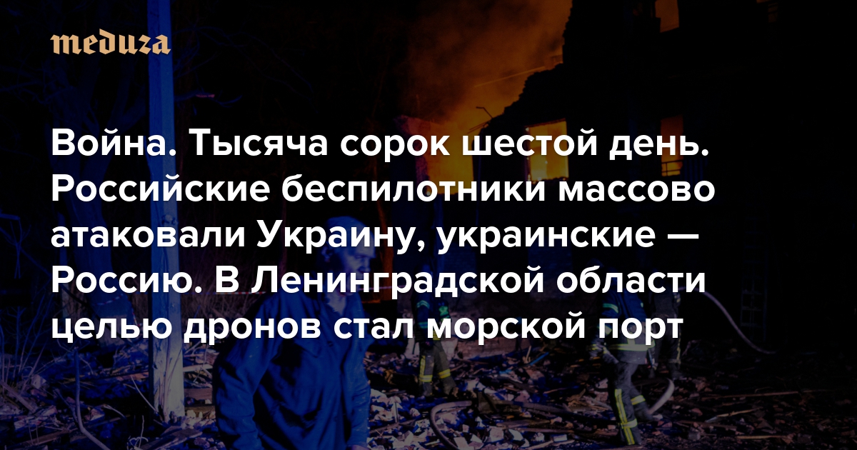 Война Тысяча сорок шестой день. Российские беспилотники массово атаковали Украину, украинские — Россию. В Ленинградской области целью дронов стал морской порт