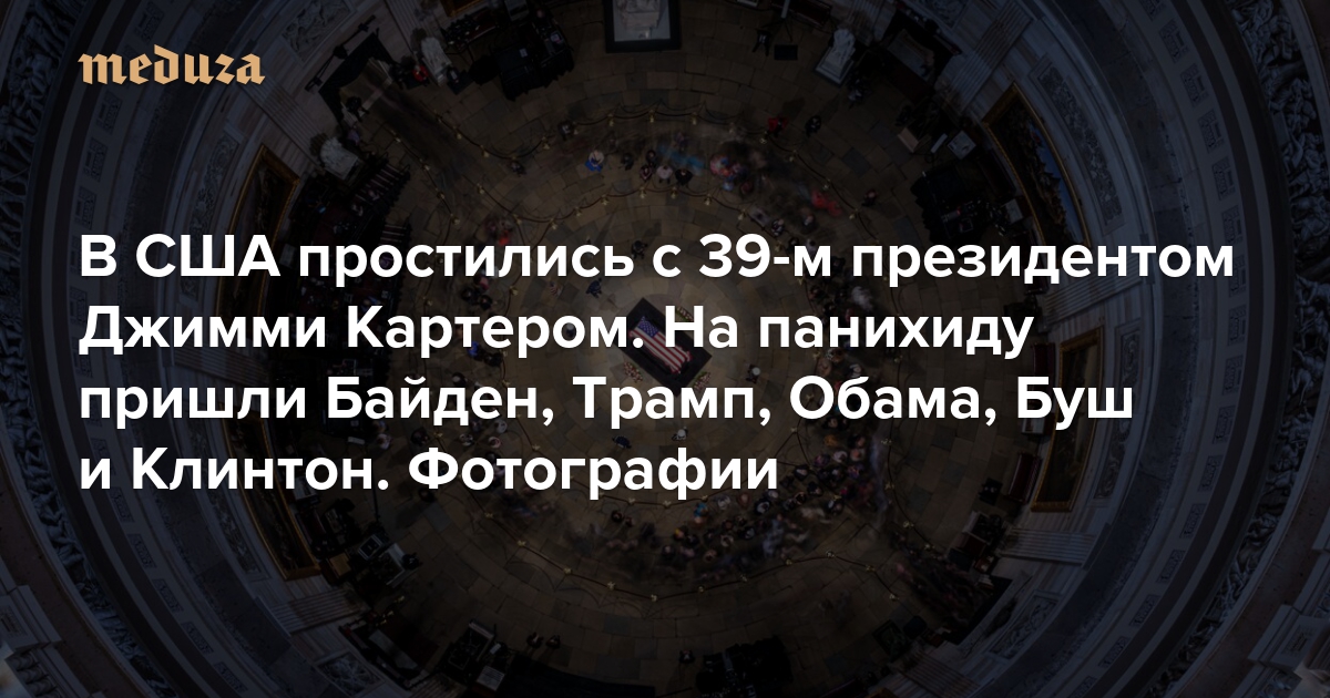 В США простились с 39-м президентом Джимми Картером На панихиду пришли Байден, Трамп, Обама, Буш и Клинтон. Фотографии