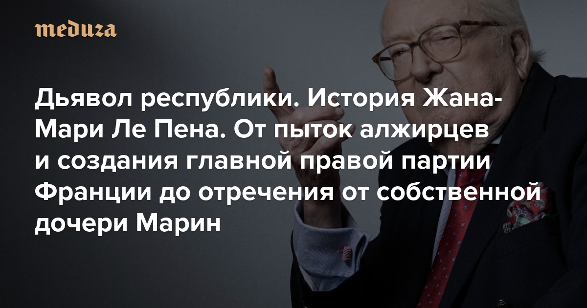 Создатель правой партии «Народный фронт» Жан-Мари Ле Пен призывал к ограничению иммиграции, рассуждал о расовом неравенстве как о научном факте и называл холокост «мелочью». Во Франции Ле Пена прозвали «дьяволом республики». Тем не менее он оказался одной из наиболее значимых политических фигур в новейшей истории страны и пять раз участвовал в президентских выборах (впрочем, безуспешно). Кроме того, Ле Пен стал родоначальником династии французских правых политиков: свою партию он передал дочери Марин, политикой занимается и его внучка Марион Марешаль. Жан-Мари Ле Пен умер на 97 году жизни, 7 января 2025-го. «Медуза» рассказывает, как он сделал французских ультраправых частью политического мейнстрима.