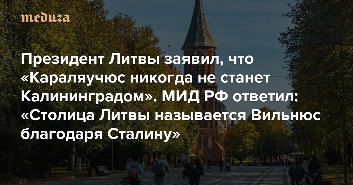 Президент Литвы заявил, что «Караляучюс никогда не станет Калининградом». МИД РФ ответил: «Столица Литвы называется Вильнюс благодаря Сталину»
