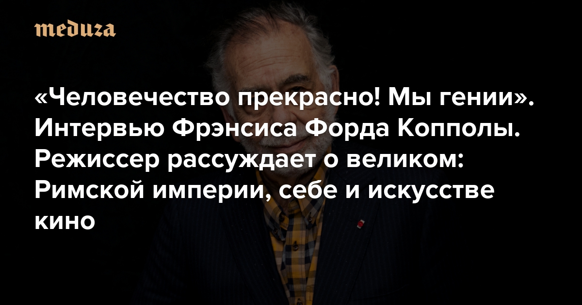 «Человечество прекрасно! Мы гении» Интервью Фрэнсиса Форда Копполы. Режиссер рассуждает о великом: Римской империи, себе и искусстве кино