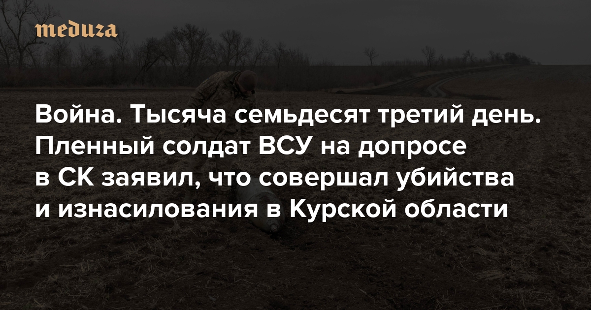 Следственный комитет РФ опубликовал видеозапись допроса украинского военнослужащего Евгения Фабрисенко, захваченного в плен в Курской области. О Фабрисенко стало впервые известно 26 января — тогда в пресс-службе судов Курской области сообщили об аресте украинского военнослужащего, которого обвиняют по статьям о терроризме и преступлениях против половой неприкосновенности.