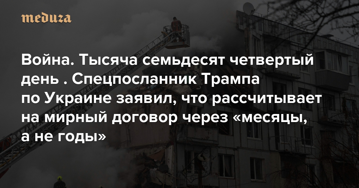 Война Тысяча семьдесят четвертый день. Спецпосланник Трампа заявил, что рассчитывает на мир между Россией и Украиной через «месяцы, а не годы»