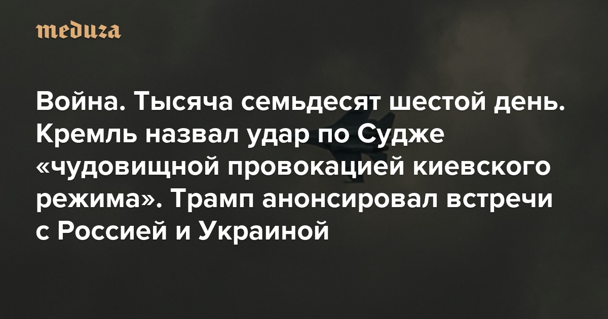 Война Тысяча семьдесят шестой день. Кремль назвал удар по Судже «чудовищной провокацией киевского режима». Трамп анонсировал встречи с Россией и Украиной