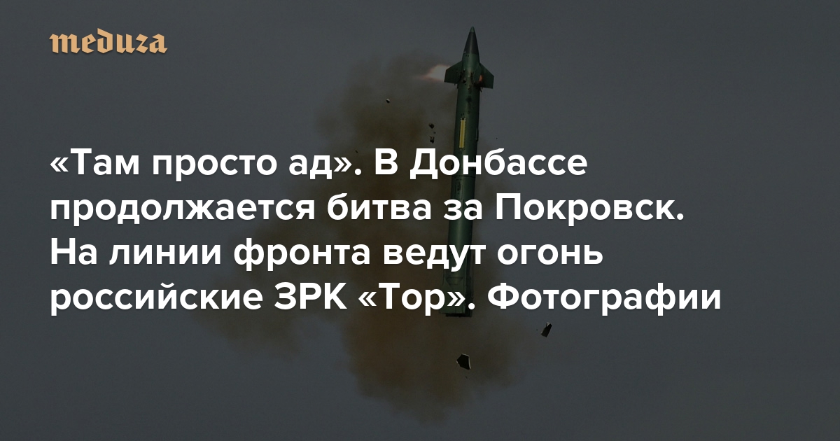 Российские войска продолжают наступление на Покровск в Донецкой области. Захват этого города, как отмечает «Медуза» в свежей сводке о боях (ее можно посмотреть здесь), откроет войскам РФ путь на Днепр и в северные районы Донецкой области. Защищающие Покровск украинские военные, пишет WSJ, столкнулись с нехваткой пехоты, которую частично пытаются компенсировать беспилотниками. Однако для того, чтобы полностью остановить наступление российских войск, заявили изданию украинские военные, нужно в 10 раз больше войск. «У нас просто недостаточно людей, чтобы защитить Покровск», — сказал собеседник издания. Волонтеры, помогающие вывозить из зоны боев мирных жителей, в репортаже «Би-би-си» описывали обстановку в районе Покровска словами: «Там просто ад». «Медуза» публикует снимки, сделанные с российской стороны фронта на покровском направлении. На фотографиях показана работа зенитно-ракетных комплексов «Тор».
