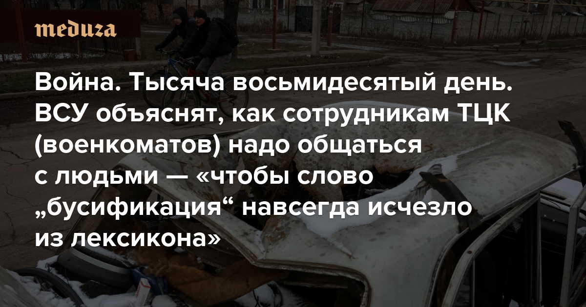 Война Тысяча восьмидесятый день. ВСУ объяснят, как сотрудникам ТЦК (военкоматов) надо общаться с людьми — «чтобы слово „бусификация“ навсегда исчезло из лексикона»