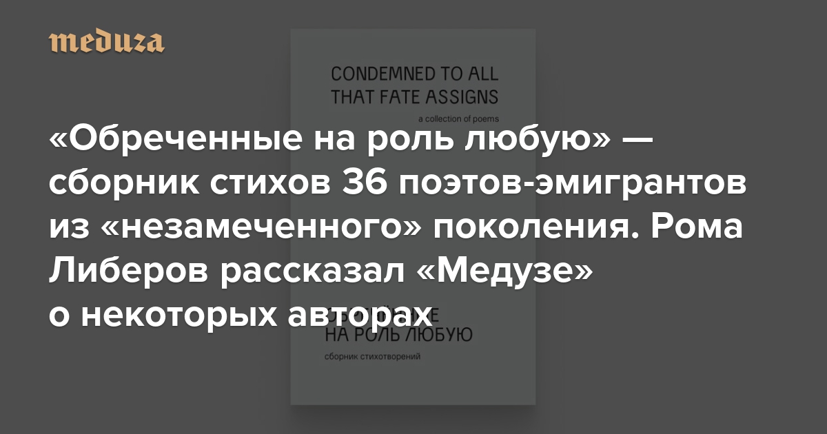 «Обреченные на роль любую» — Рома Либеров выпустил сборник, куда вошли стихотворения 36 поэтов-эмигрантов из «незамеченного» поколения Специально для «Медузы» он рассказал о некоторых авторах