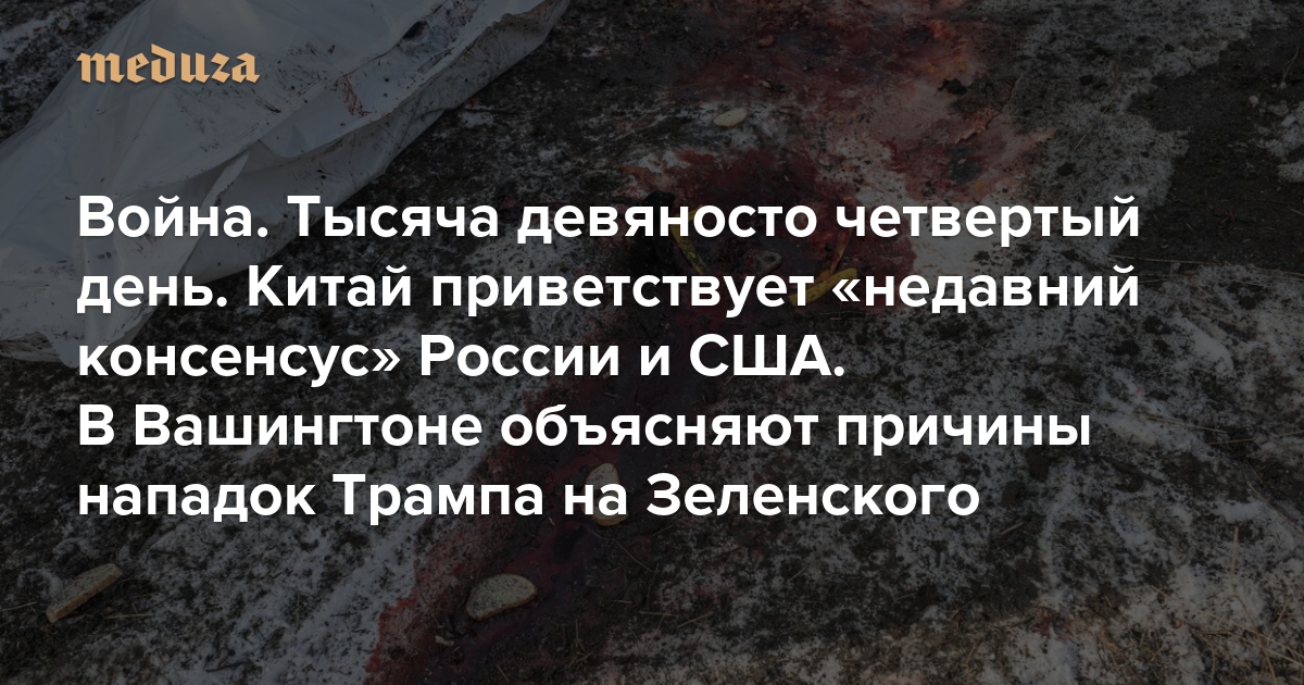 Война Тысяча девяносто четвертый день. Китай приветствует «недавний консенсус» России и США. В Вашингтоне объясняют причины нападок Трампа на Зеленского