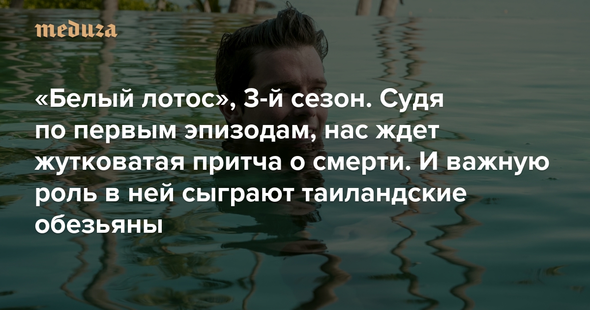 На стриминге HBO Max вышли первые эпизоды третьего сезона «Белого лотоса». Сатирический сериал Майка Уайта об отдыхающих (и работающих) на роскошных курортах на этот раз посвящен смерти, духовному поиску и самоидентификации. Место действия — Таиланд. Среди главных героев — дикие обезьяны, которых фанаты шоу уже обвиняют во всех бедах, произошедших с героями. «Медуза» рассказывает о первых двух сериях шоу.