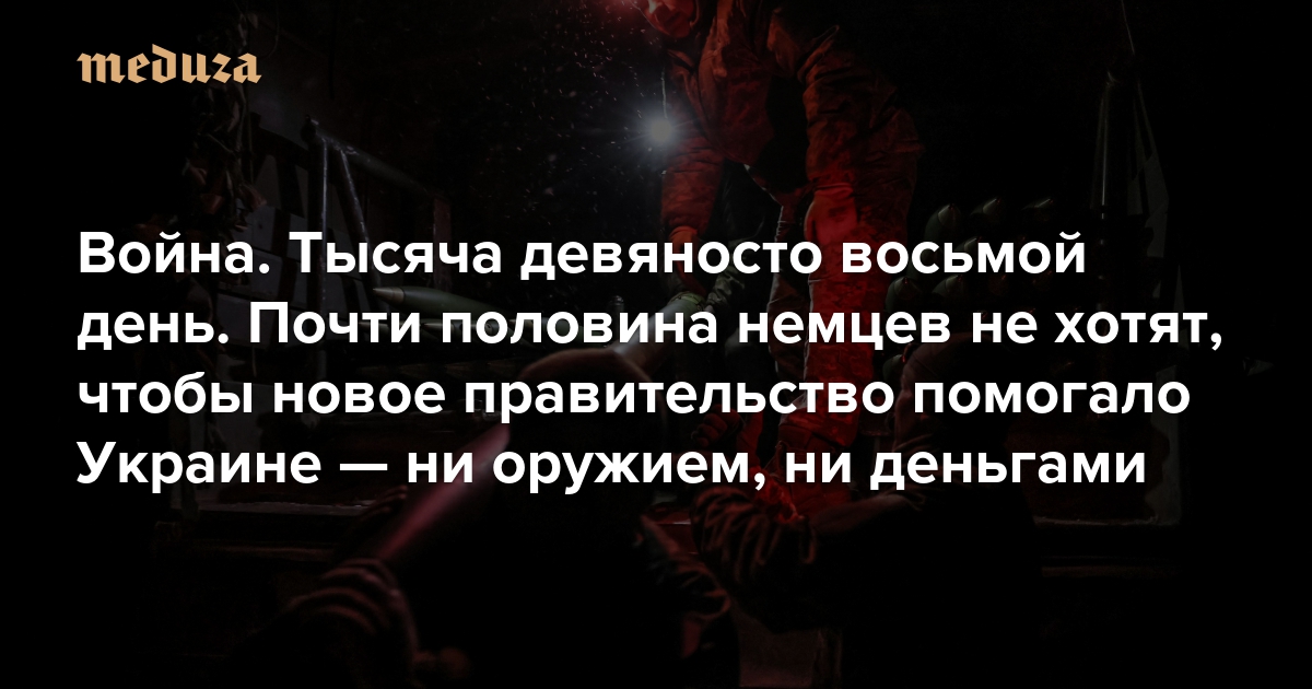 Война Тысяча девяносто восьмой день. Почти половина немцев не хотят, чтобы новое правительство помогало Украине — ни оружием, ни деньгами