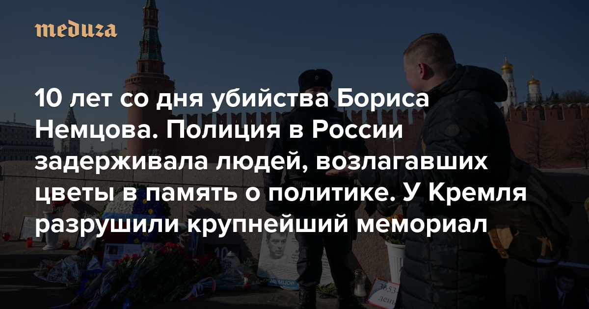 10 лет со дня убийства Бориса Немцова Полиция в России задерживала людей, возлагавших цветы в память о политике. У Кремля разрушили крупнейший мемориал