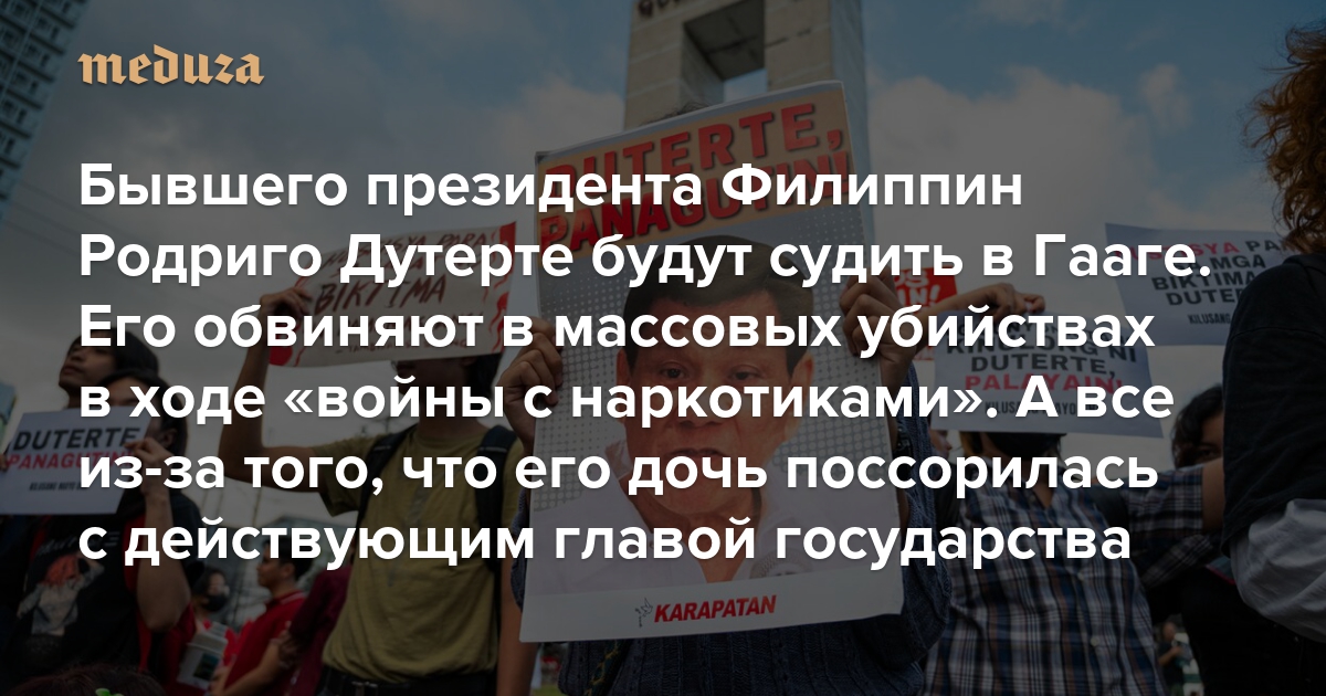 На Филиппинах арестовали Родриго Дутерте, бывшего президента и отца действующего вице-президента Сары Дутерте. Его передали Международному уголовному суду (МУС) в Гааге. Дутерте обвиняют в преступлениях против человечности в ходе «войны с наркотиками».
