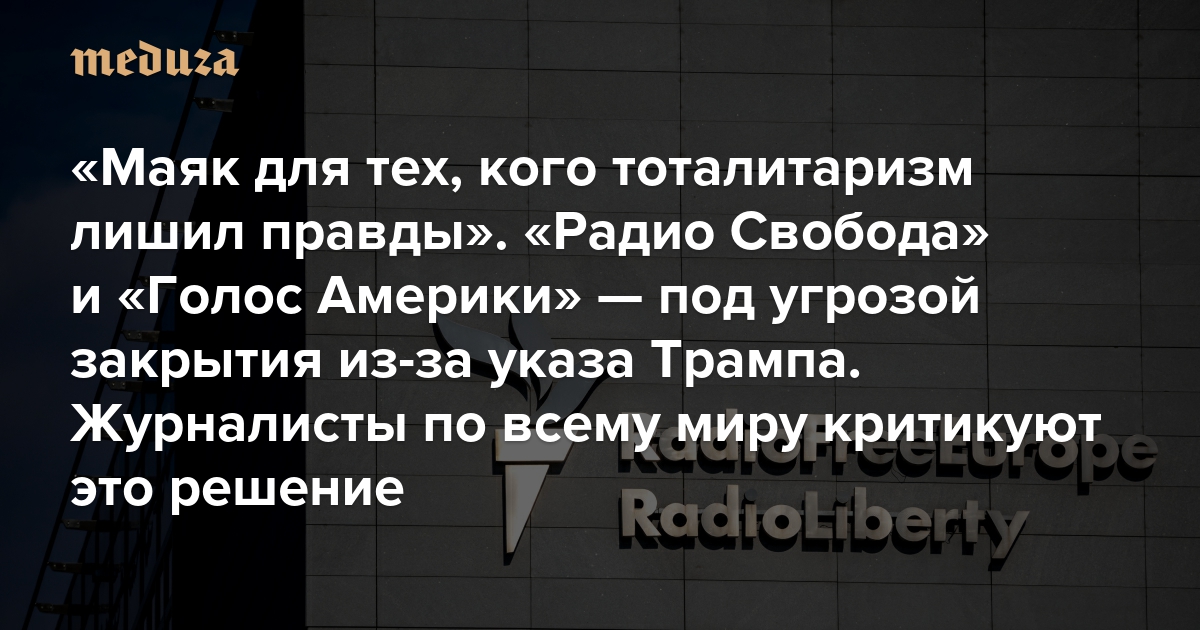 «Маяк для тех, кого тоталитаризм лишил правды». «Радио Свобода» и «Голос Америки» — под угрозой закрытия из-за указа Трампа Журналисты по всему миру критикуют это решение