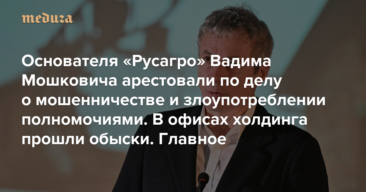 Основателя «Русагро» Вадима Мошковича арестовали по делу о мошенничестве и злоупотреблении полномочиями. В офисах холдинга прошли обыски. Главное