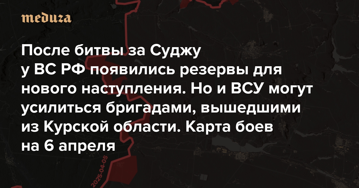 После битвы за Суджу у ВС РФ появились резервы для нового наступления. Но и ВСУ могут усилиться бригадами, вышедшими из Курской области С чем обе армии подходят к летней кампании? Карта боев на 6 апреля