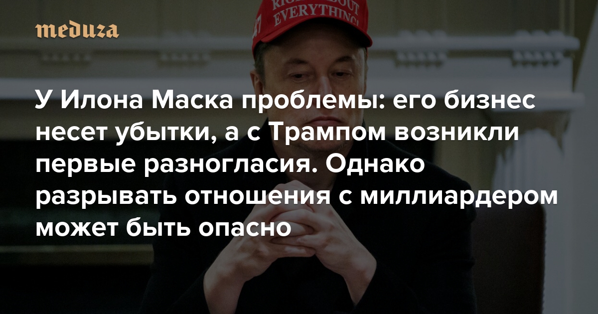 У Илона Маска проблемы: его бизнес несет убытки, а с Трампом возникли первые разногласия Журналисты предсказывают изгнание миллиардера из окружения президента, однако ссориться с ним может быть опасно