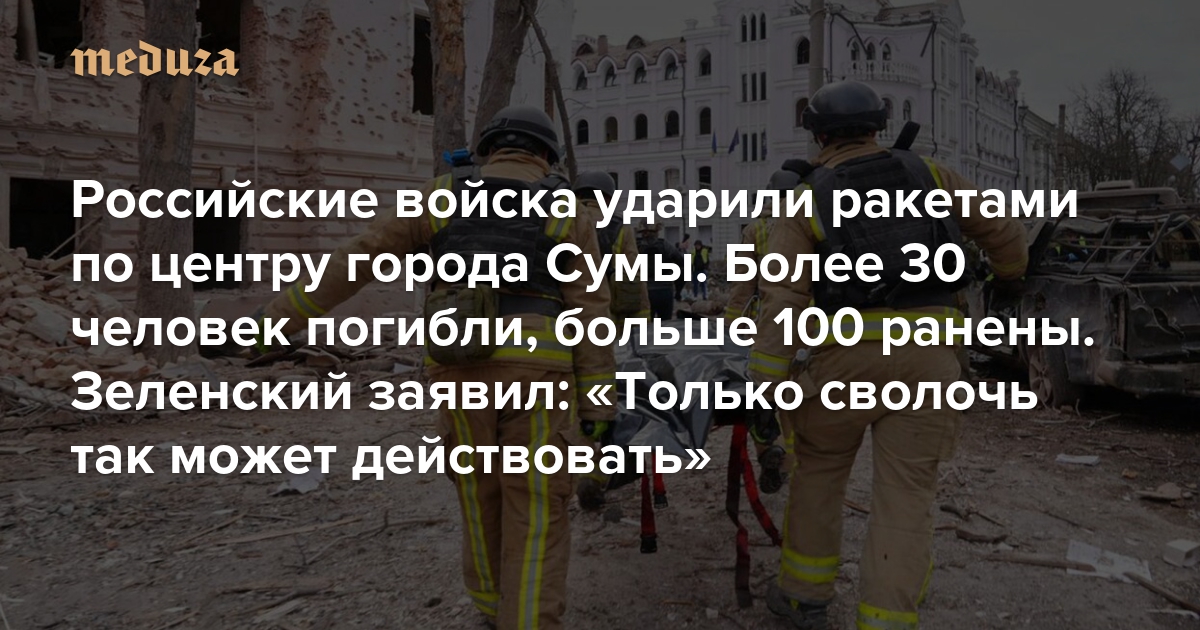 Российские войска ударили ракетами по центру города Сумы. Более 30 человек погибли, больше 100 ранены Зеленский заявил: «Только сволочь так может действовать»