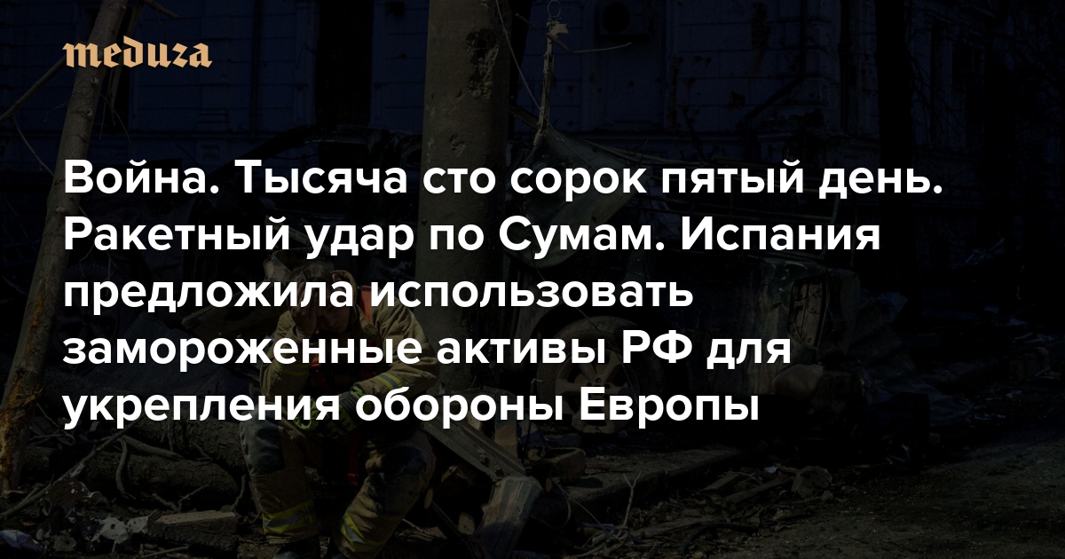 Война Тысяча сто сорок пятый день. Россия ударила ракетами по Сумам. Испания предложила использовать замороженные активы РФ для укрепления обороны Европы