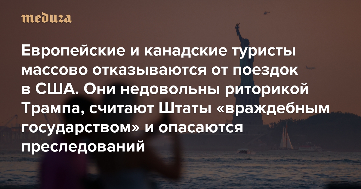 В США приезжает все меньше туристов — свое нежелание посещать Штаты они объясняют обстановкой, которая сложилась в стране после возвращения в должность президента Дональда Трампа. Многих из тех, кто планировал провести в США отпуск или увидеться с близкими, задела враждебная риторика президента и членов его администрации в отношении Европы и Канады. Другая причина — страх иностранцев перед возможным задержанием: в последние месяцы регулярно появляются новости о строгих досмотрах при въезде, а начатая Белым домом кампания по выдворению нелегальных мигрантов уже привела к задержанию нескольких туристов из-за путаницы с документами. «Медуза» рассказывает, как США перестали считаться популярным направлением для отдыха и чем это грозит.
