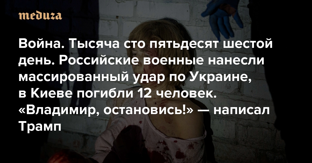 Война Тысяча сто пятьдесят шестой день. Российские военные нанесли массированный удар по Украине, в Киеве погибли 12 человек. «Владимир, остановись!» — написал Трамп
