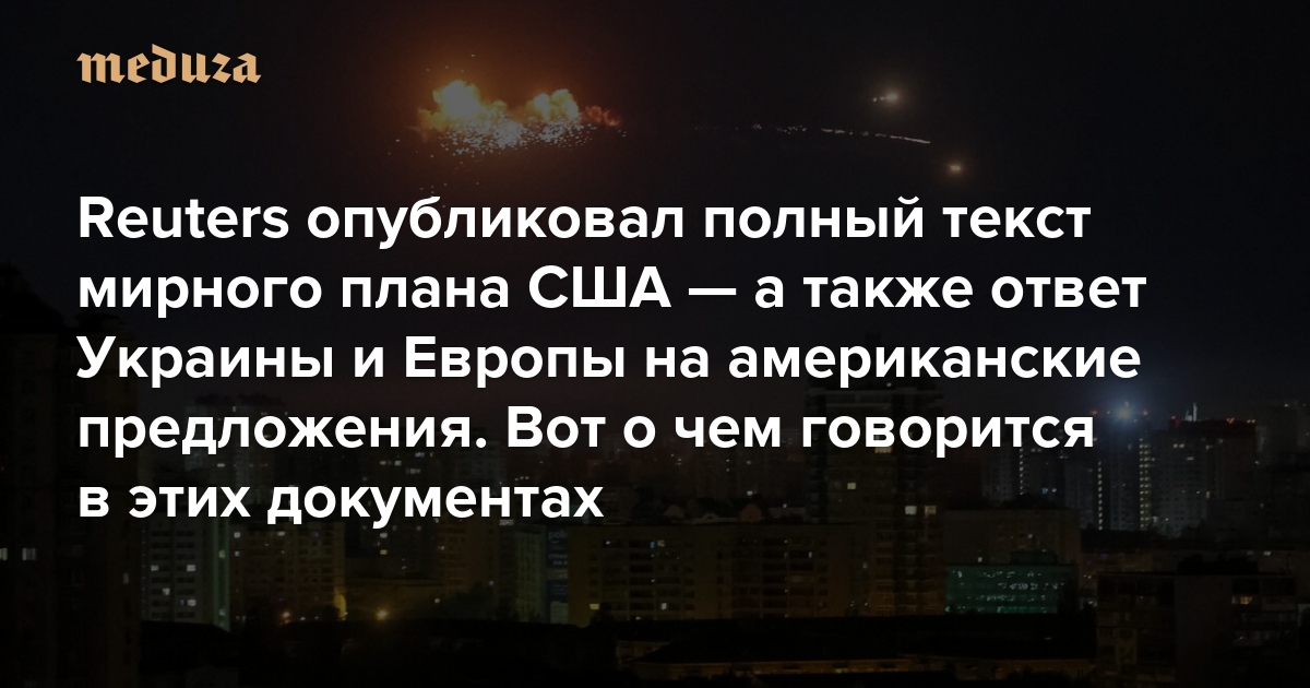 Reuters опубликовал полный текст мирного плана США — а также ответ Украины и Европы на американские предложения Вот о чем говорится в этих документах