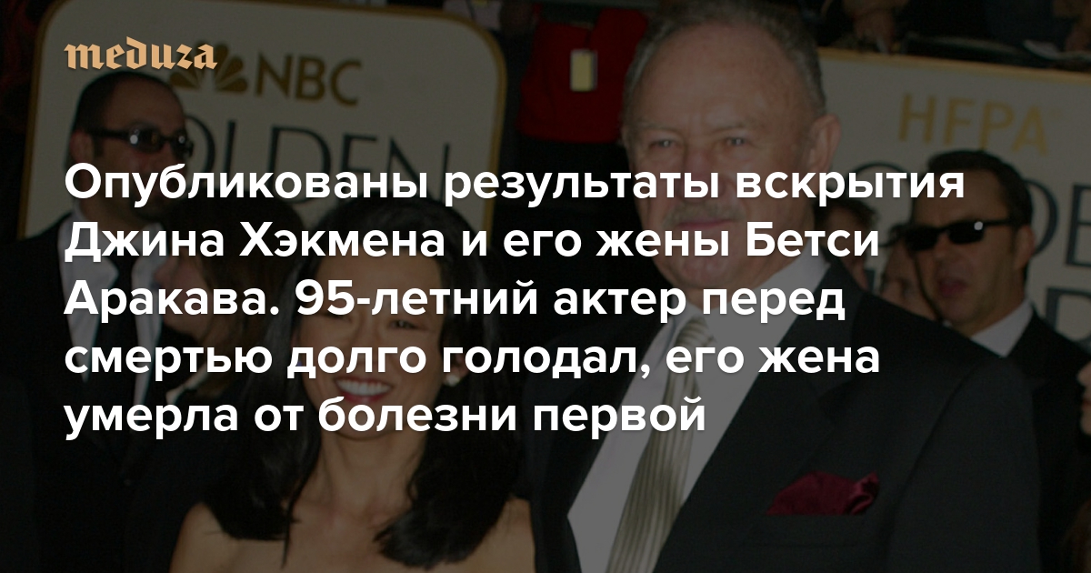 Опубликованы результаты вскрытия Джина Хэкмена и его жены Бетси Аракава 95-летний актер перед смертью долго голодал, его жена умерла от болезни первой