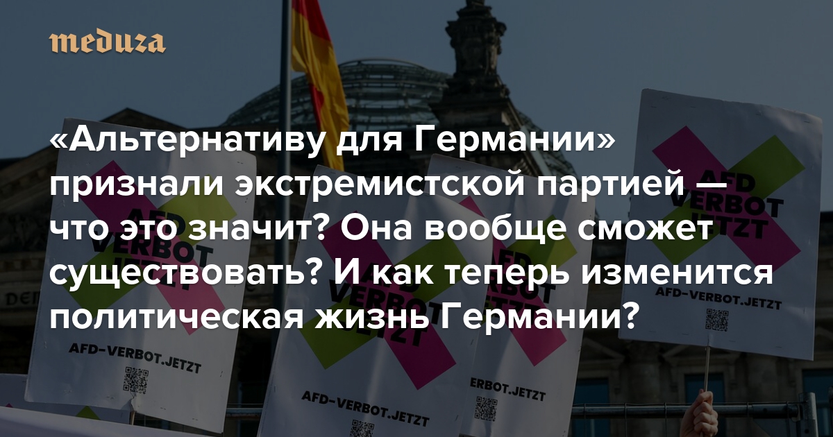 «Для значительной части общества это просто констатация факта» «Альтернативу для Германии» признали экстремистской партией — что это значит? Она вообще сможет существовать? И как теперь изменится политическая жизнь Германии?