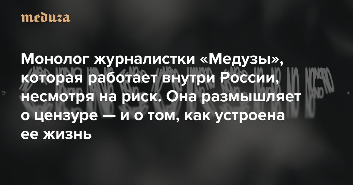 «Я задавалась вопросом: не психопатка ли я, раз не боюсь?» Монолог журналистки «Медузы», которая работает внутри России, несмотря на риск. Она размышляет о цензуре — и о том, как устроена ее жизнь
