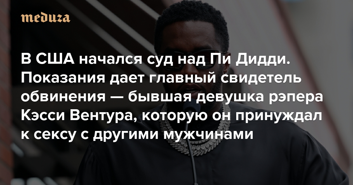 В понедельник, 12 мая, в Нью-Йорке начался суд над Шоном Комбсом — в прошлом успешным продюсером и рэпером, выступавшим под псевдонимами Пафф Дэдди, Пи Дидди, Дидди и просто ПиДи. 55-летний артист был арестован в прошлом году, его обвиняют в сексуализированном насилии и торговле людьми. На второй день слушаний показания начала давать бывшая девушка Комбса Кэсси (Кассандра) Вентура. Она, пожалуй, главный свидетель обвинения в этом громком уголовном деле. В ноябре 2023 года Вентура подала гражданский иск, в котором заявила, что Комбс избивал ее, насиловал и принуждал к сексу с другими мужчинами. Уже на следующий день иск был урегулирован — на каких условиях, неизвестно. Однако он cтал катализатором для десятков аналогичных исков и уголовного дела против Комбса. «Медуза» рассказывает, какие показания Вентура — в обвинительном заключении она названа Жертвой 1 — уже дала в суде.