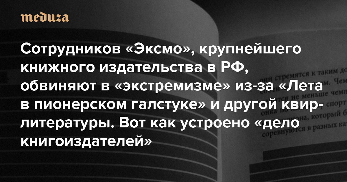 «Черный день для всей отрасли» Сотрудников «Эксмо», крупнейшего книжного издательства в РФ, обвиняют в «экстремизме» из-за «Лета в пионерском галстуке» и другой квир-литературы. Вот как устроено «дело книгоиздателей»