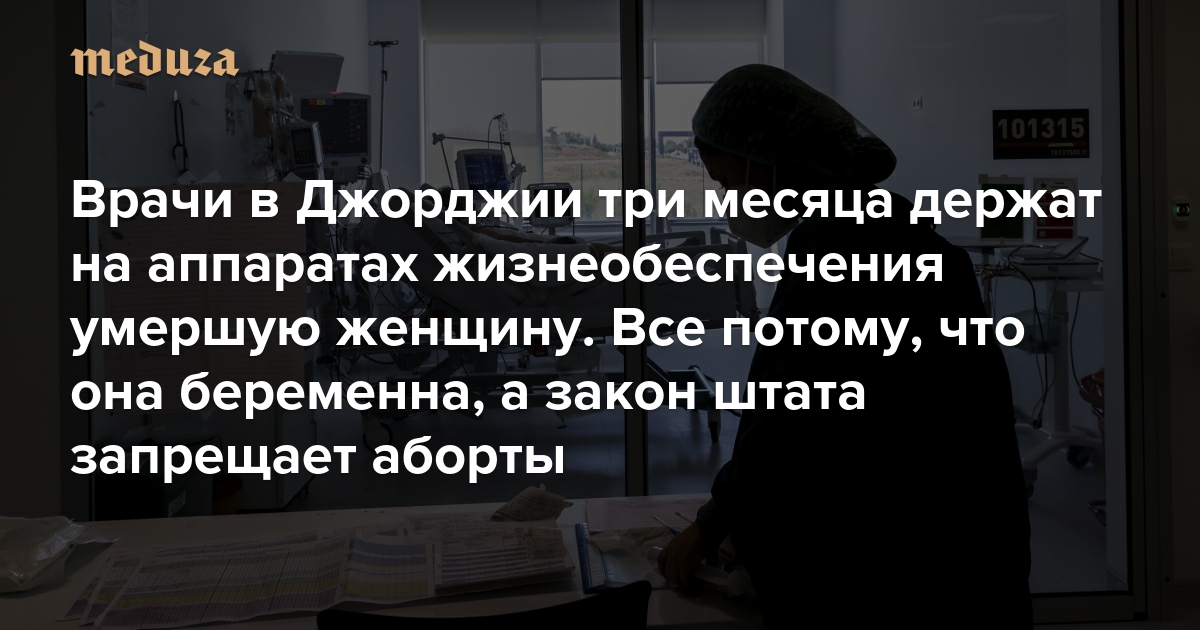 Врачи в Джорджии три месяца держат на аппаратах жизнеобеспечения умершую женщину Все потому, что она беременна, а закон штата запрещает аборты