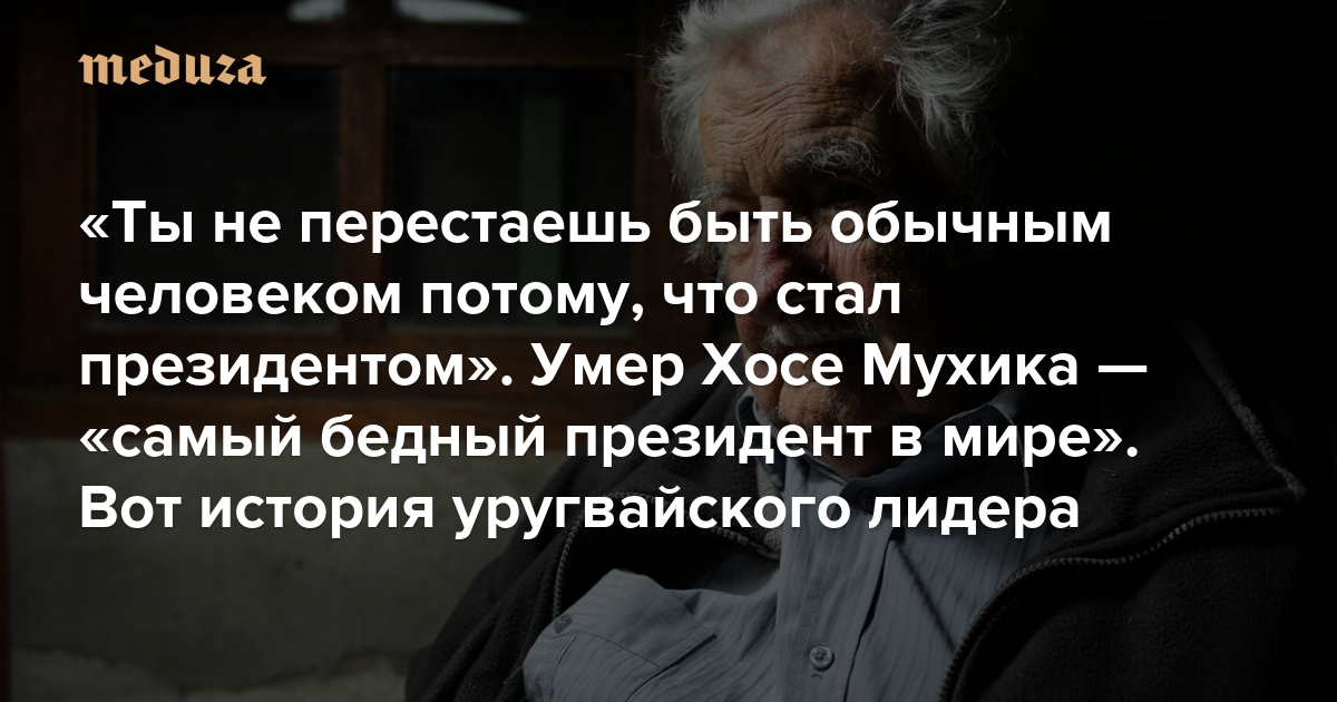 «Ты не перестаешь быть обычным человеком потому, что стал президентом» Умер Хосе Мухика — «самый бедный президент в мире». Вот история уругвайского лидера: от революции и тюрьмы до прогрессивных реформ