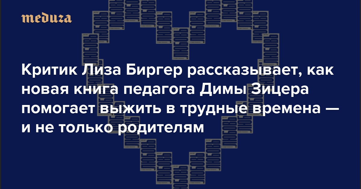 «Любовь может быть стратегией выживания» Критик Лиза Биргер рассказывает, как новая книга педагога Димы Зицера помогает выжить в трудные времена — и не только родителям