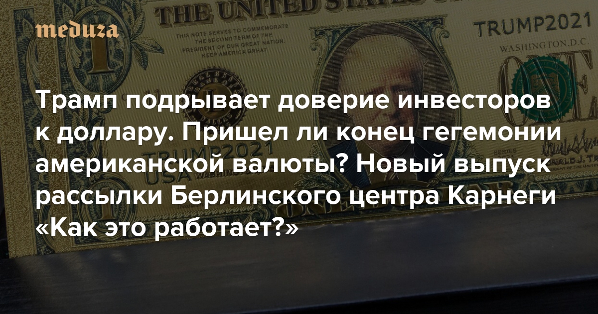 Политика Трампа все сильнее подрывает доверие инвесторов к доллару. Пришел ли конец глобальной гегемонии американской валюты? Новый выпуск рассылки Берлинского центра Карнеги «Как это работает?»