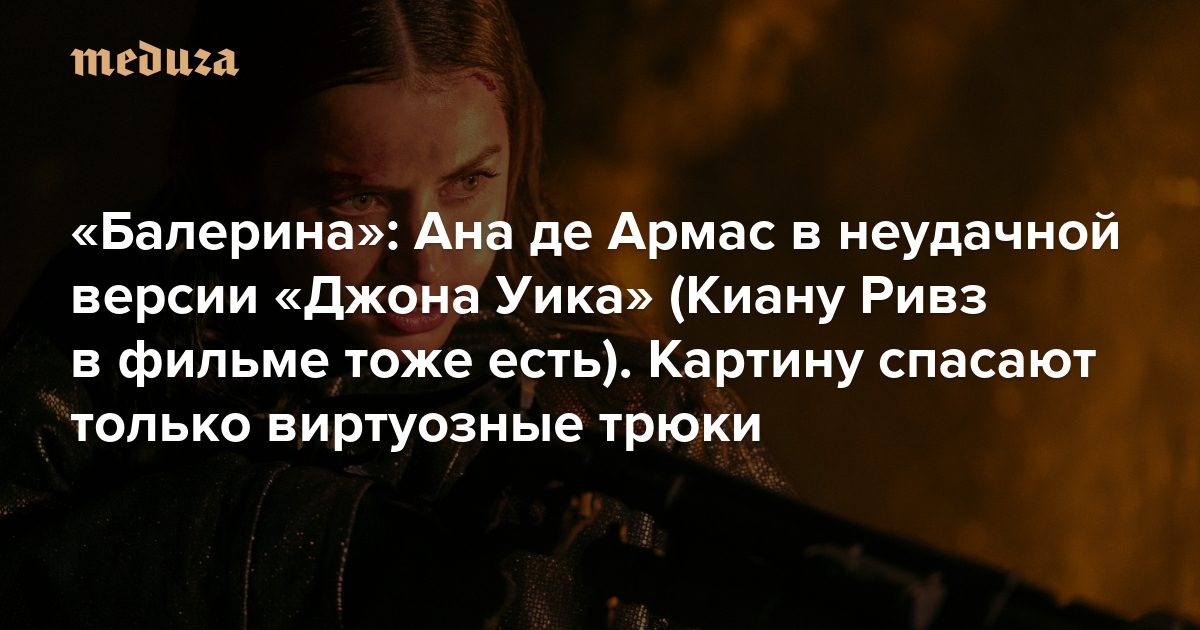 В российский прокат 5 июня вышел боевик «Балерина» (Ballerina) режиссера Лена Уайзмана — спин-офф франшизы о Джоне Уике. Главные роли исполнили Ана де Армас и Киану Ривз. Продюсером картины выступил Чад Стахельски, создавший первые четыре части «Джона Уика». Кинокритик Антон Долин рассказывает, почему фильм, хотя и получился зрелищным, все же оказался посредственной поделкой.