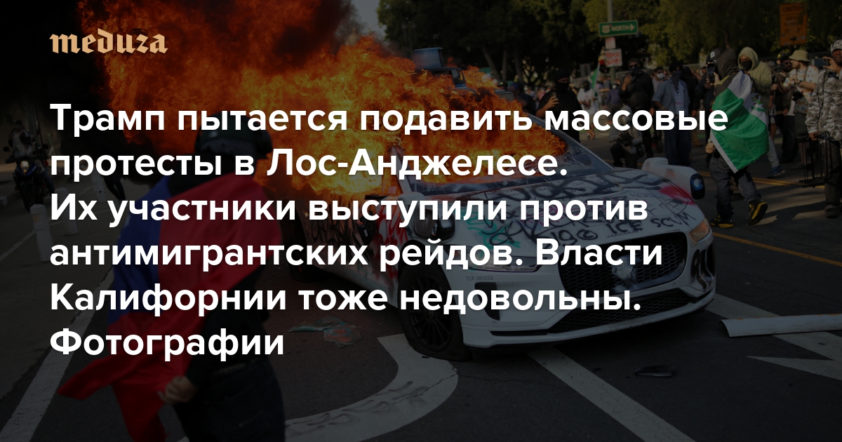 Трамп пытается подавить массовые протесты в Лос-Анджелесе Их участники выступили против антимигрантских рейдов. Власти Калифорнии тоже недовольны. Фотографии