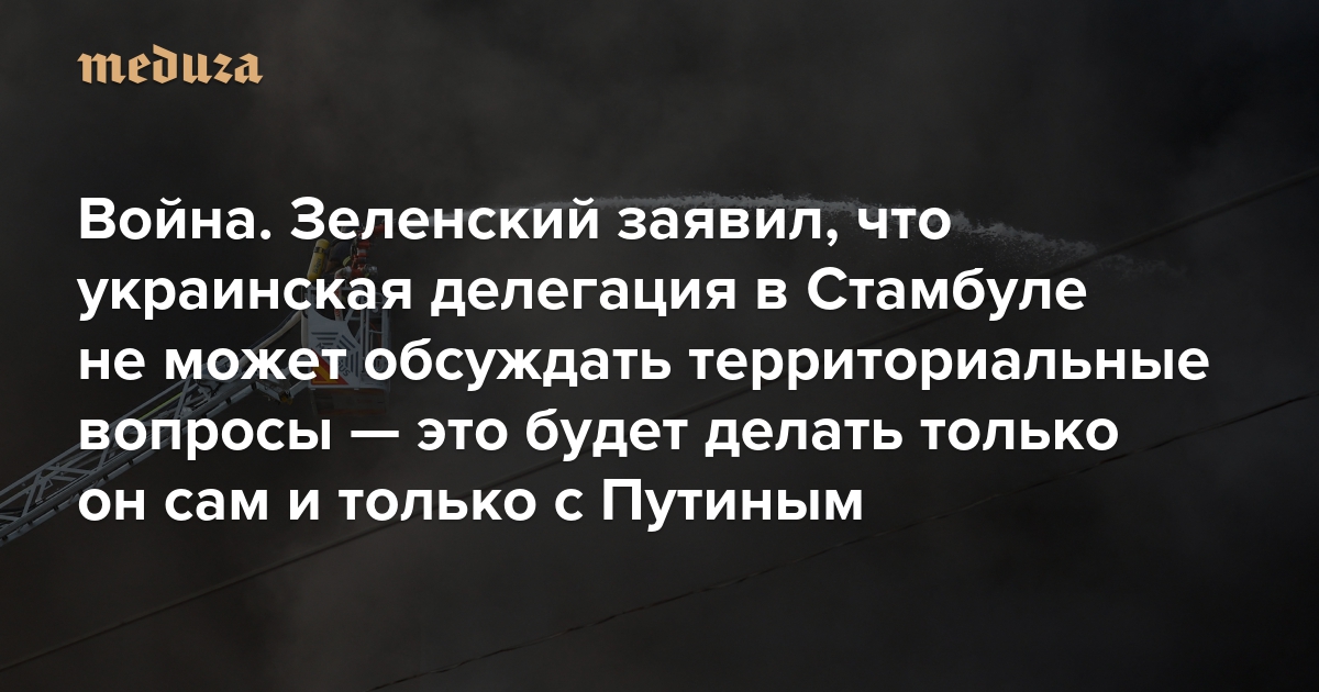 Война Тысяча двести третий день. Зеленский заявил, что украинская делегация в Стамбуле не может обсуждать территориальные вопросы — это будет делать только он сам и только с Путиным