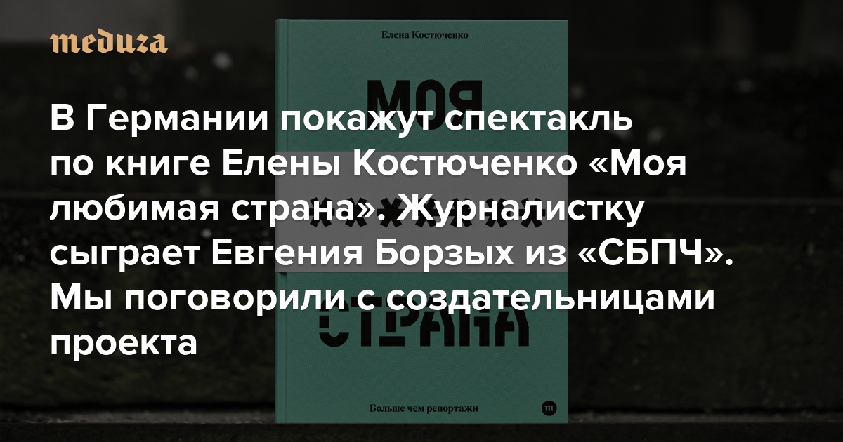 В Германии покажут спектакль по книге Елены Костюченко «Моя любимая страна». Журналистку сыграет Евгения Борзых из «СБПЧ» (а ее маму — Чулпан Хаматова) Вот что о проекте рассказывают его создательницы