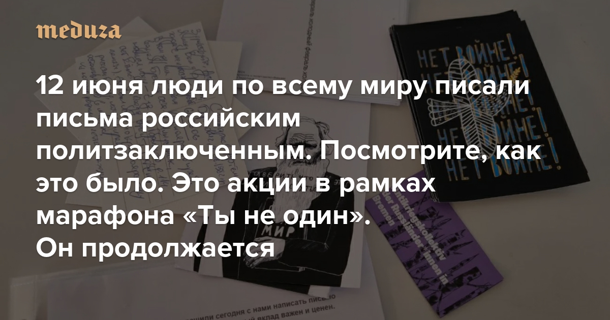 12 июня люди по всему миру писали письма российским политзаключенным. Посмотрите, как это было Это акции в рамках марафона «Ты не один». Он продолжается