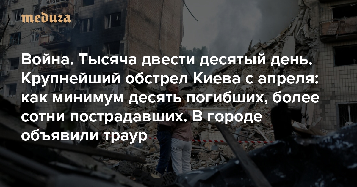 Война Тысяча двести десятый день. Крупнейший обстрел Киева с апреля: как минимум десять погибших, более сотни пострадавших. В городе объявили траур